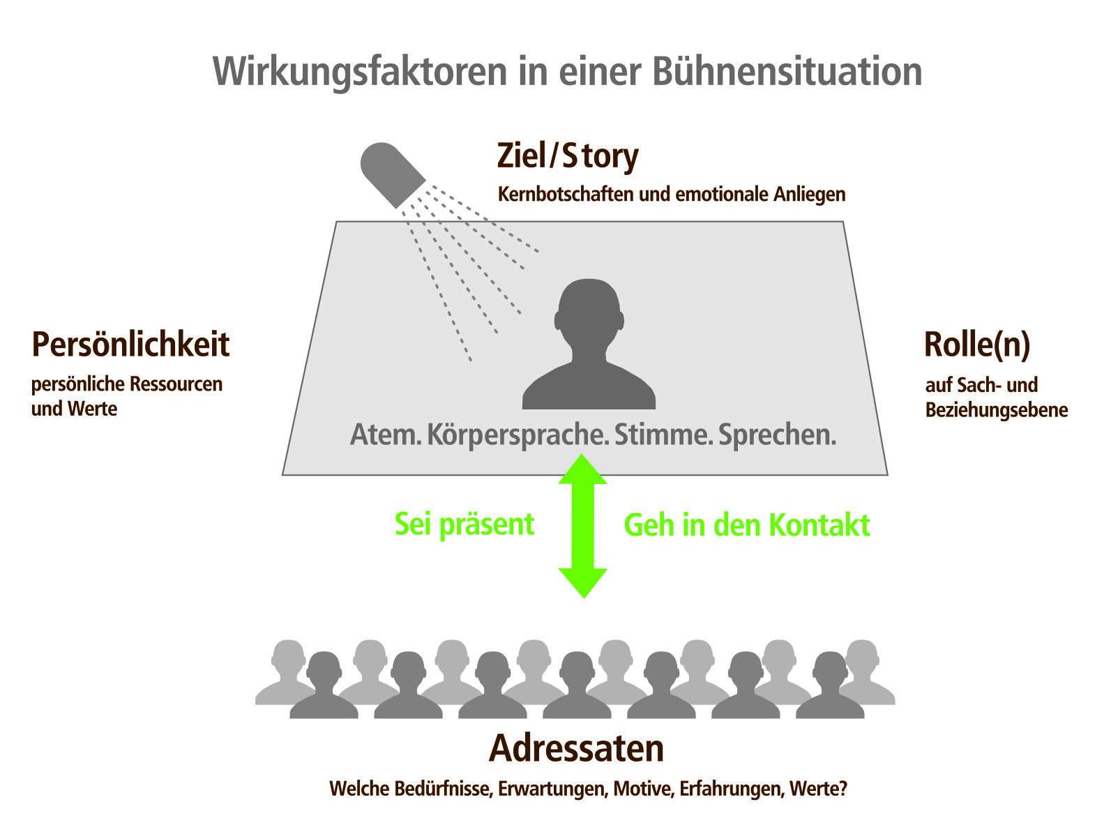 Jede Business-Situation ist grundsätzlich eine Bühnen-Situation. Egal ob Präsentation, Kunden-Gespräch oder Führungssituation: